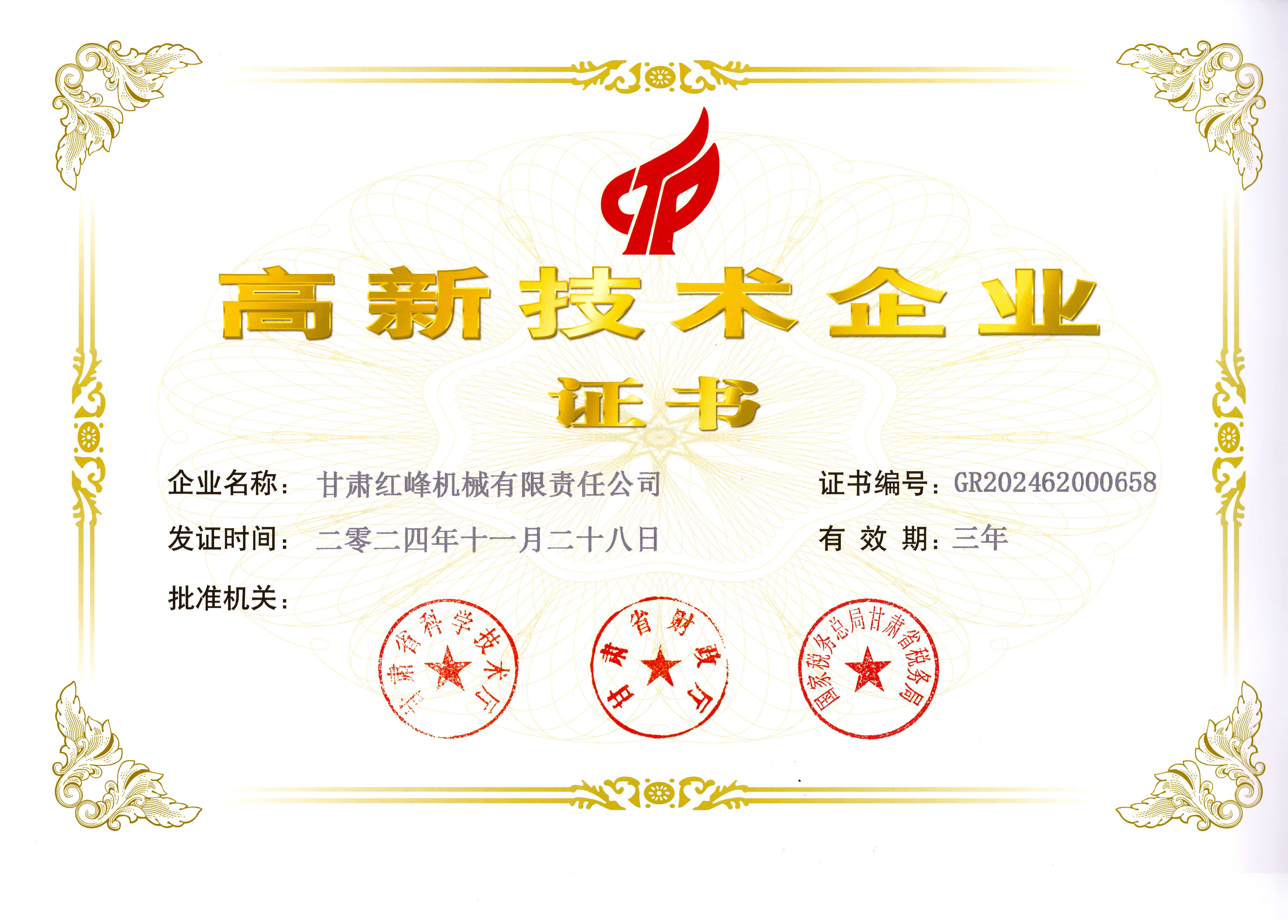 近期,全國高新技術(shù)企業(yè)認(rèn)定管理工作領(lǐng)導(dǎo)小組辦公室發(fā)布《對甘肅省認(rèn)定機(jī)構(gòu)2024年認(rèn)定報備的第三批高新技術(shù)企業(yè)進(jìn)行備案的公告》,公司被列入甘肅省認(rèn)定機(jī)構(gòu)2024年認(rèn)定報備的第三批高新技術(shù)企業(yè)備案名單。本
